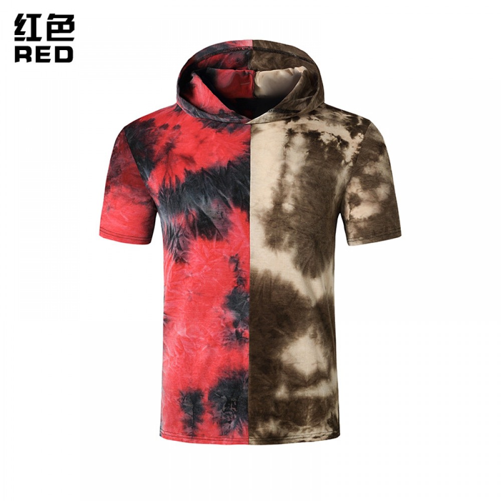 New Men's European Style Personality Short-Sleeved Color Matching Gradient Hooded T-Shirt