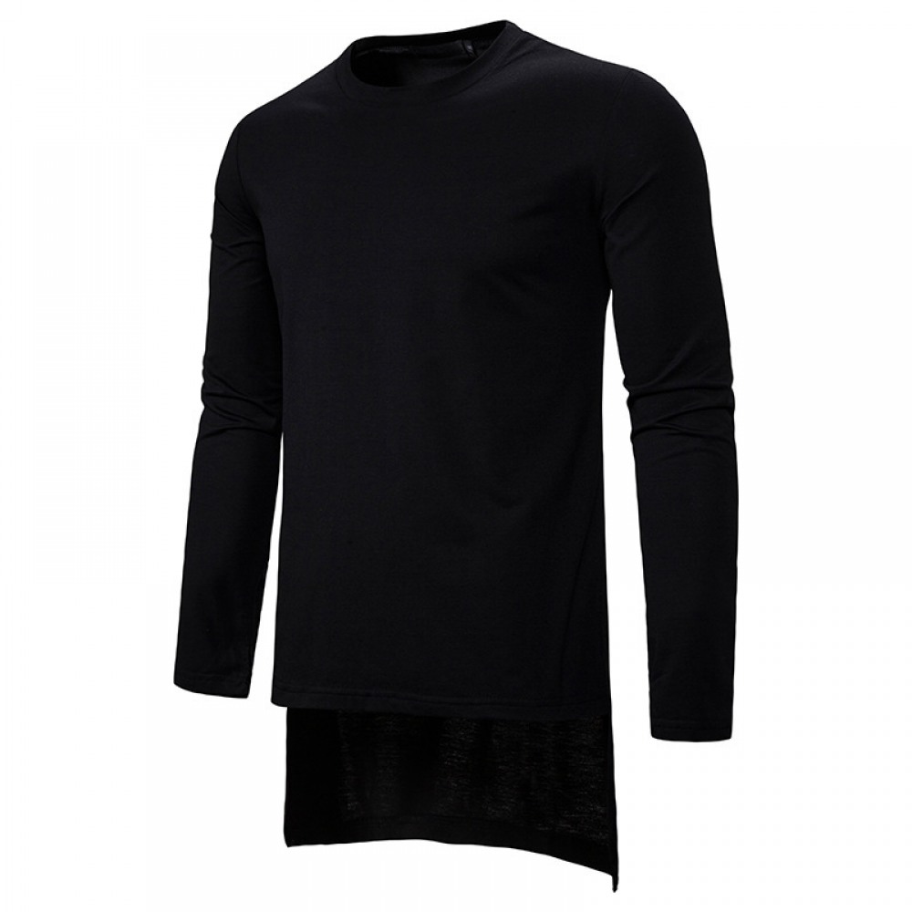Round Neck T-Shirt Men's Loose Dark Trend Irregular Mens Long-Sleeved Shirts