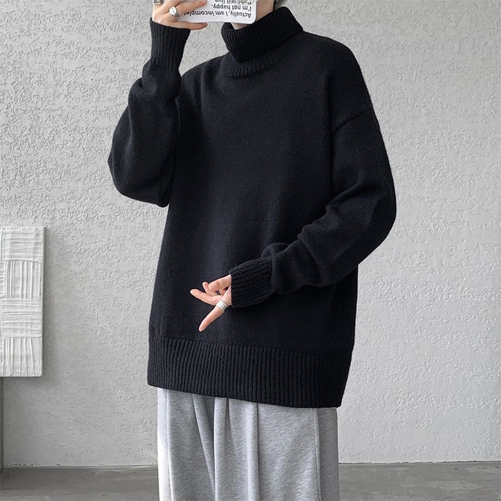 Men's Thick Loose Turtleneck Sweater Vintage Wool Sweater