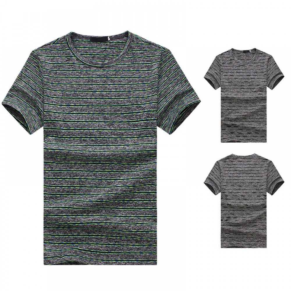 New Summer Men's Short-Sleeved T-Shirt Mens Contrast Striped Slim Casual T-Shirt
