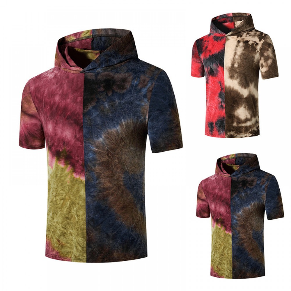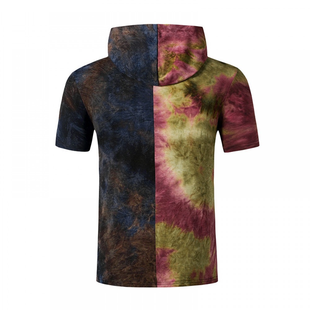 New Men's European Style Personality Short-Sleeved Color Matching Gradient Hooded T-Shirt