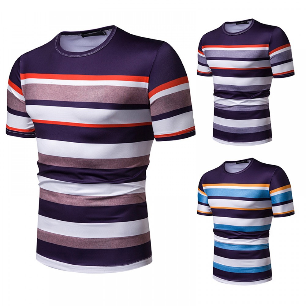 New Summer Men's Short-Sleeved T-Shirt Men's Contrast Striped Slim Casual T-Shirt