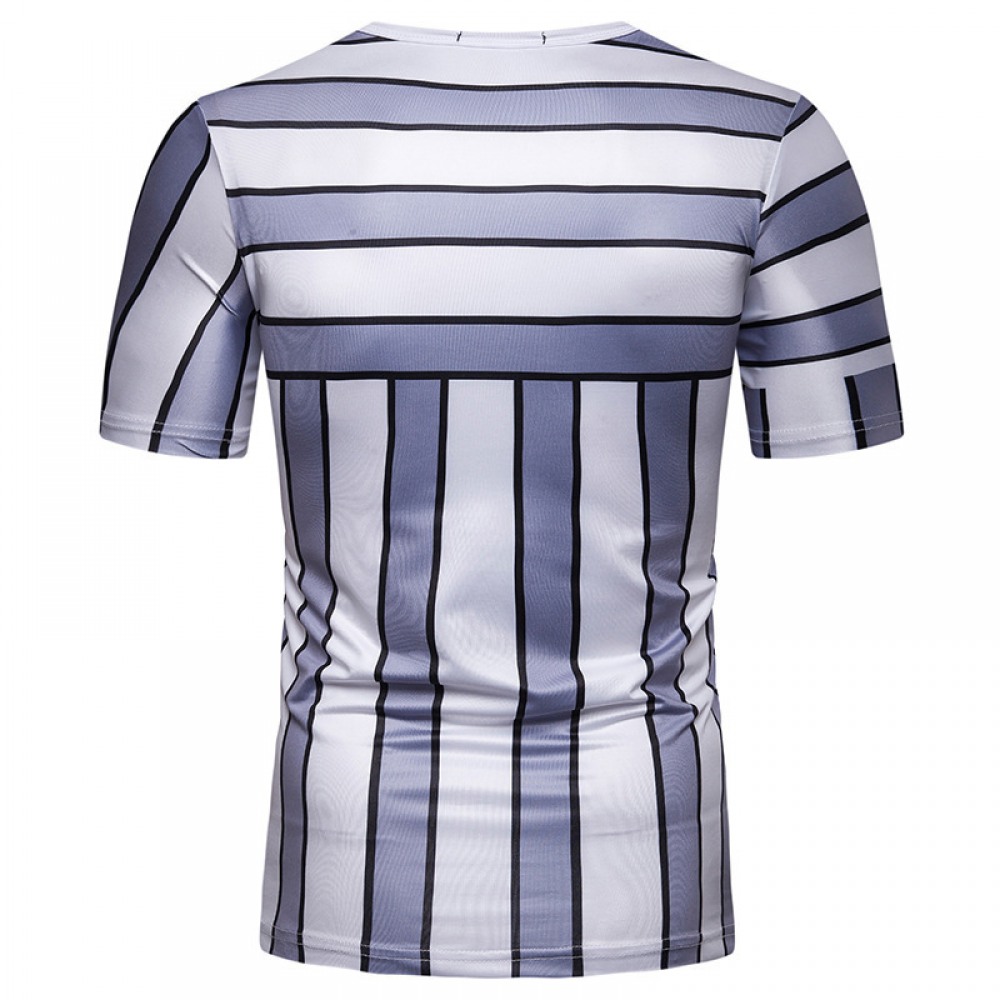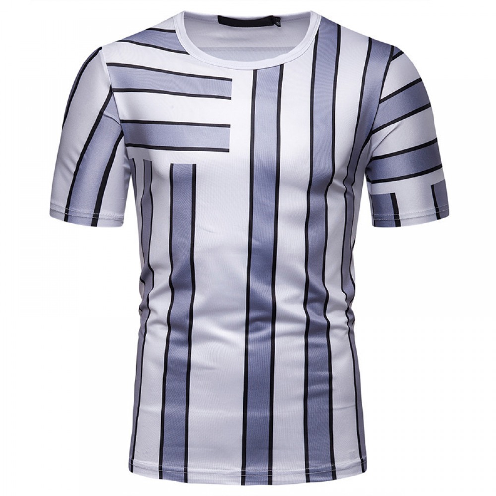Men's 3D Geometric Stripe Printing Round Neck Hip-Hop High Street Short-Sleeved T-Shirt