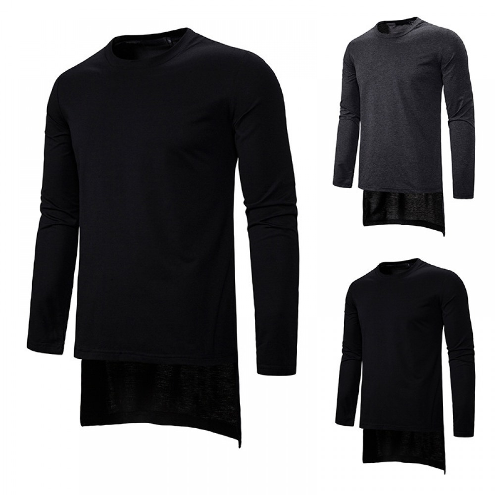 Round Neck T-Shirt Men's Loose Dark Trend Irregular Mens Long-Sleeved Shirts